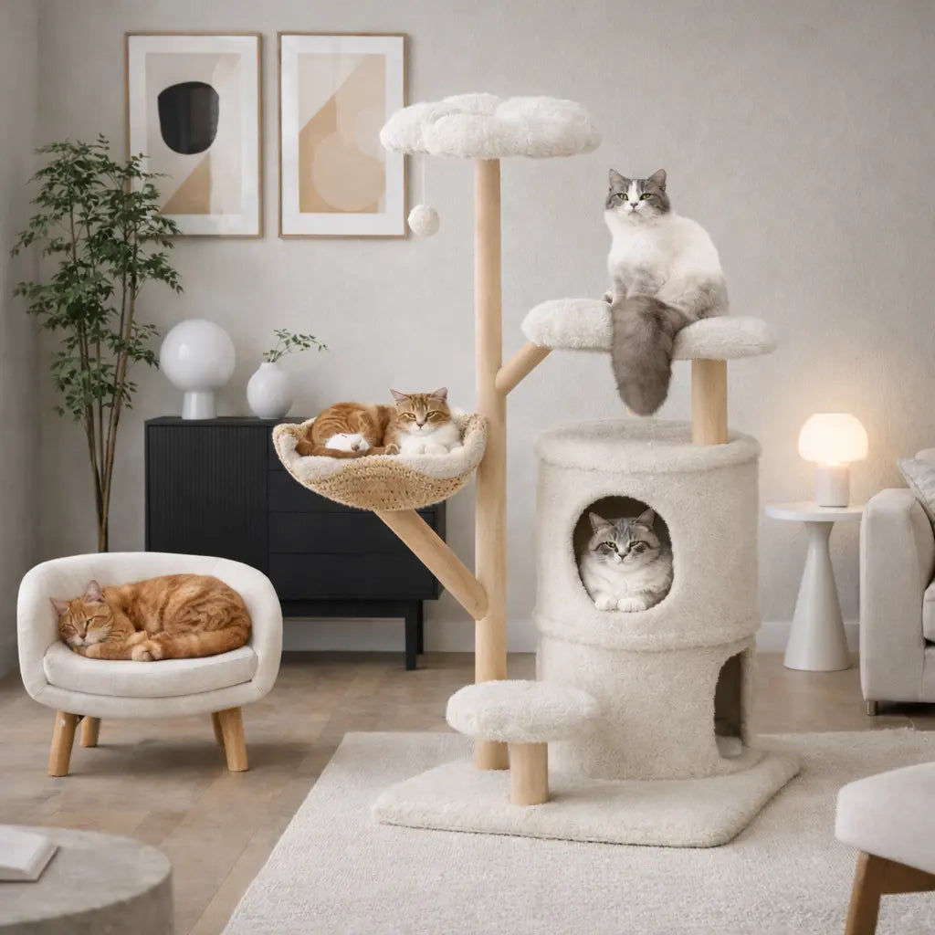 Arbre à chat bois avec hamacs suspendus et niches | LUMIA™